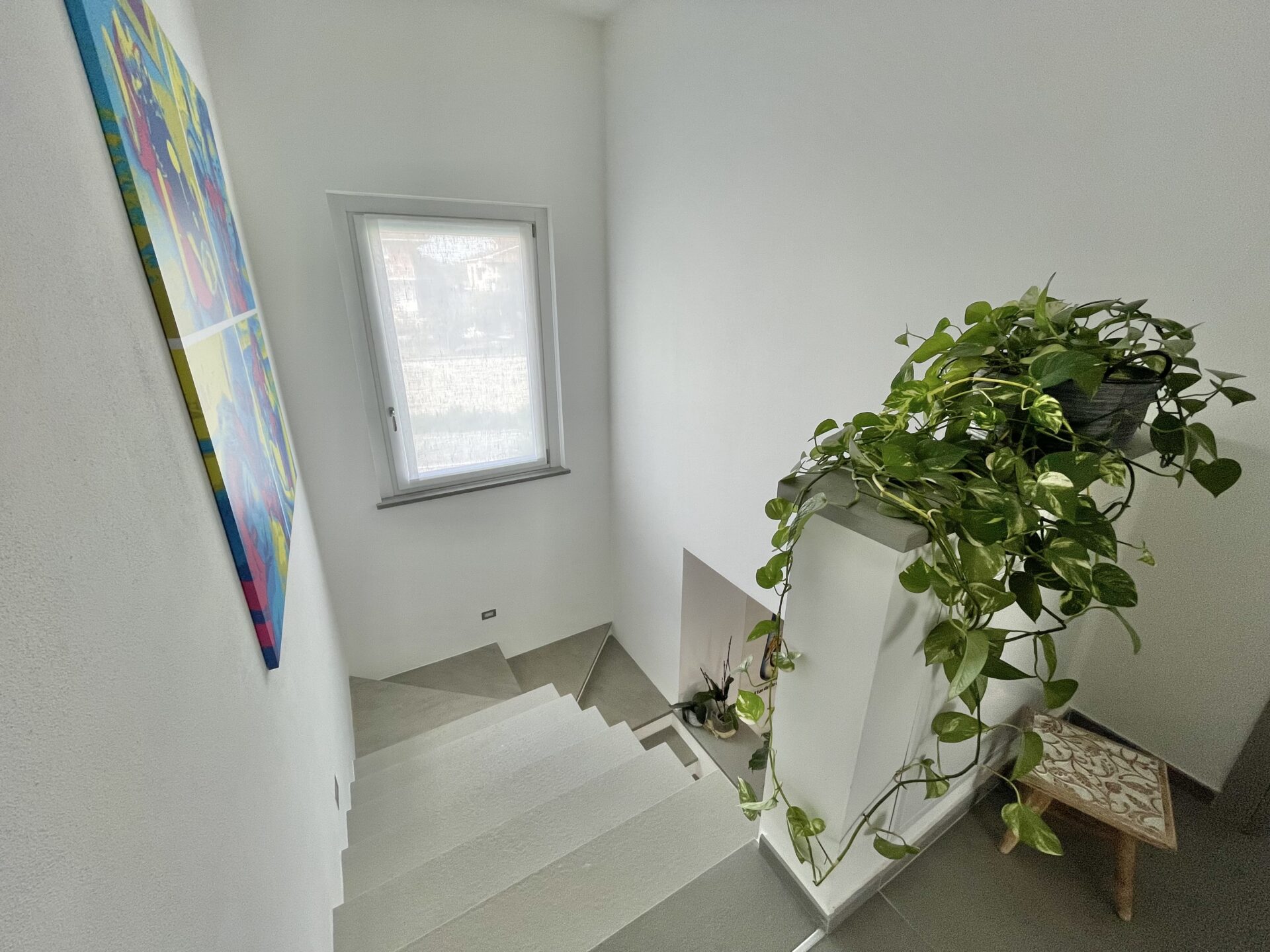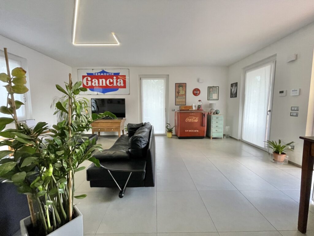 La soluzione proposta è stata completata nel 2021. Al piano terreno un’ampia zona giorno living ben divisa tra salotto e zona pranzo, caratterizzata da una moderna cucina con isola, ricavata da un mobile di inizio ‘800 su cui troviamo il piano a induzione. Ampio bagno con doccia e lavanderia.